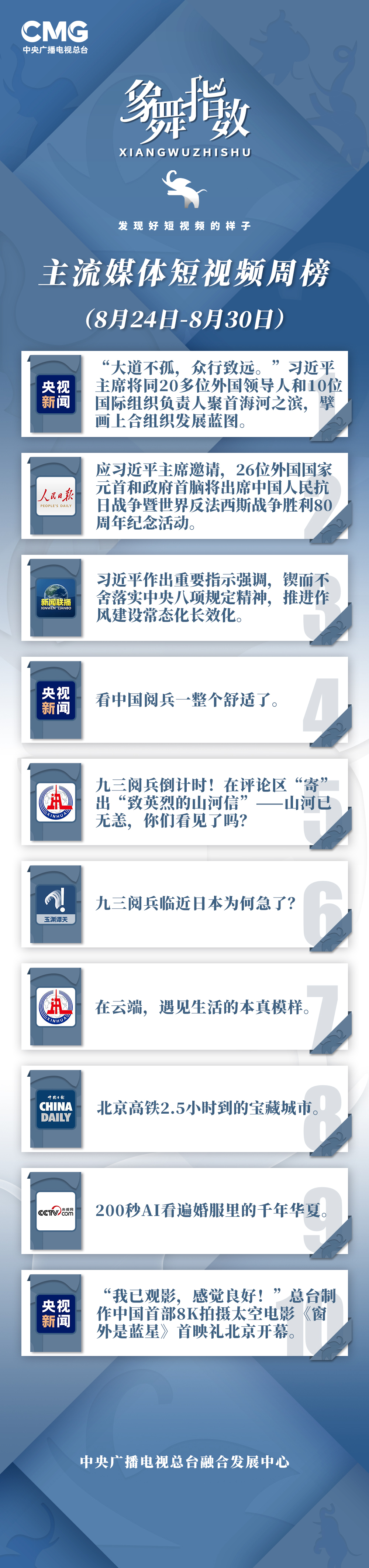 象舞指数|短视频周榜(2025年8月24日—8月30日)