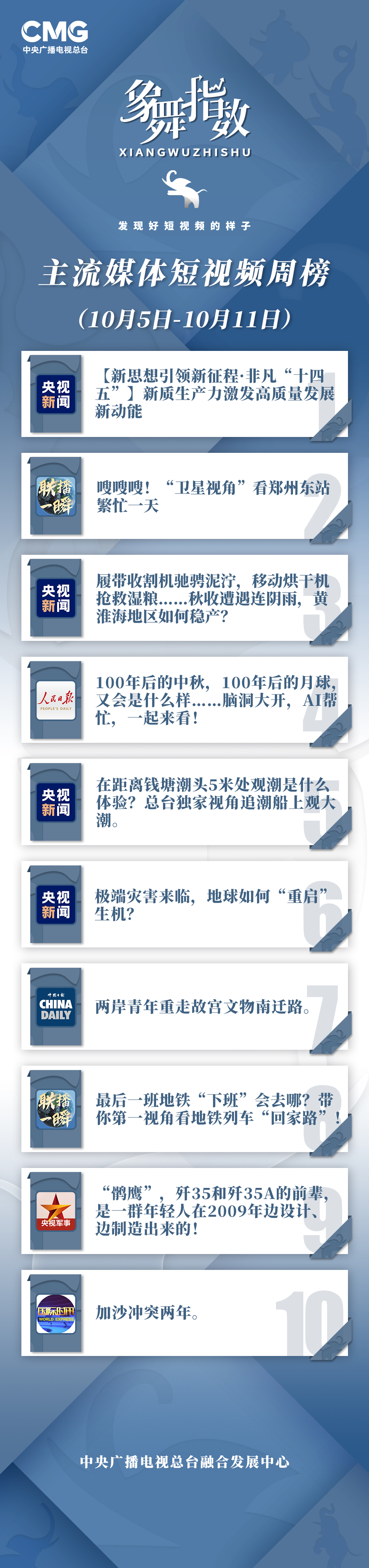 象舞指数|短视频周榜(2025年10月5日—10月11日)